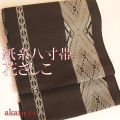 八寸帯 黒茶色 花さしこ 仕立て付き 2065-025 送料無料