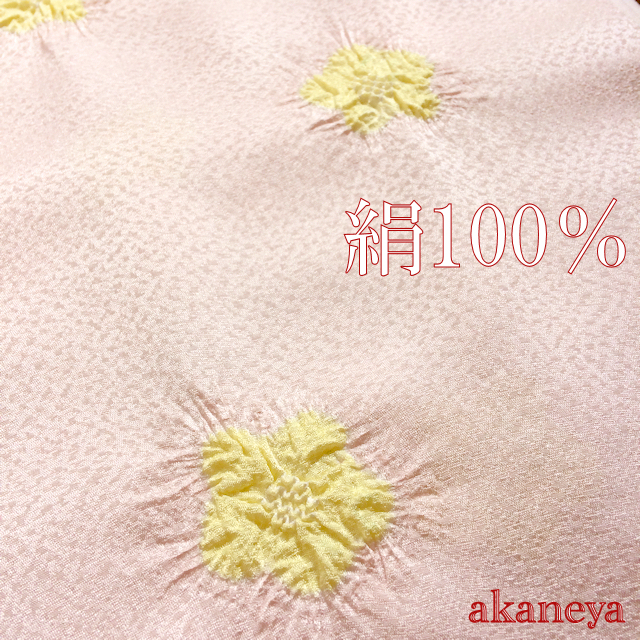 | 帯揚げの色・柄 | 飛び絞り ピンクの生地 黄色の花 |