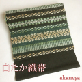 優しい色彩と立体感のある織りに奥行きを感じる帯です。 大地、植物など自然物の色は、落ち着いた上品な印象にしてくれます。 |