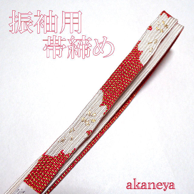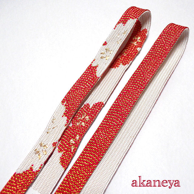 振袖用帯〆 白に朱色 本格平組 1398-85 送料無料