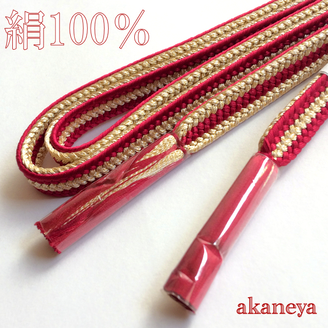 帯締め(帯〆)訪問着・附下等 赤に金 2285 送料がお得なクリックポスト可