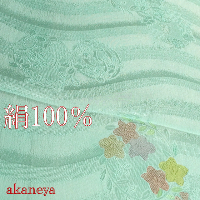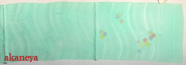 夏の帯揚げ 青緑 花丸紋 正絹 絽 2358