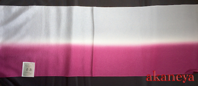 帯揚げ ちりめん グレーと牡丹色の染め分け 水撚り八丁撚糸 2547