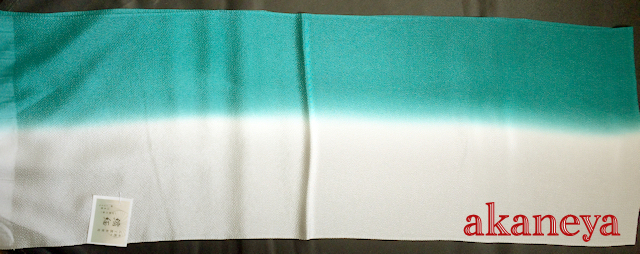 帯揚げ ちりめん グレーと青緑色の染め分け 水撚り八丁撚糸 2548