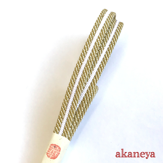| 帯締めの色・組み方 | 暗い黄色に銀糸 中央に白ライン |