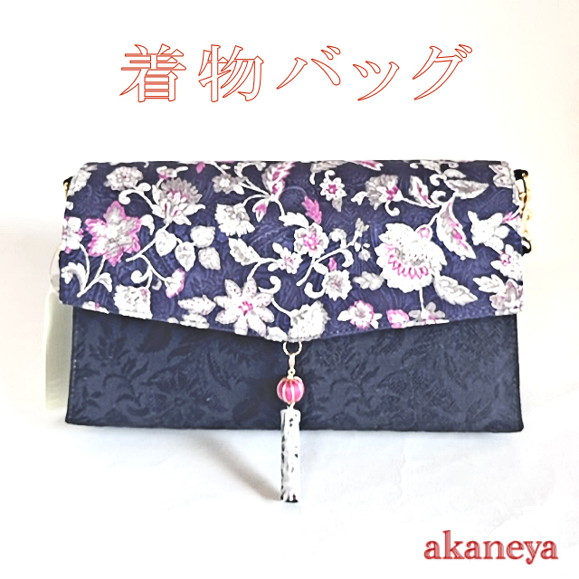 着物バッグ 和装にも洋装にも 紺色 花柄 3366 送料無料
